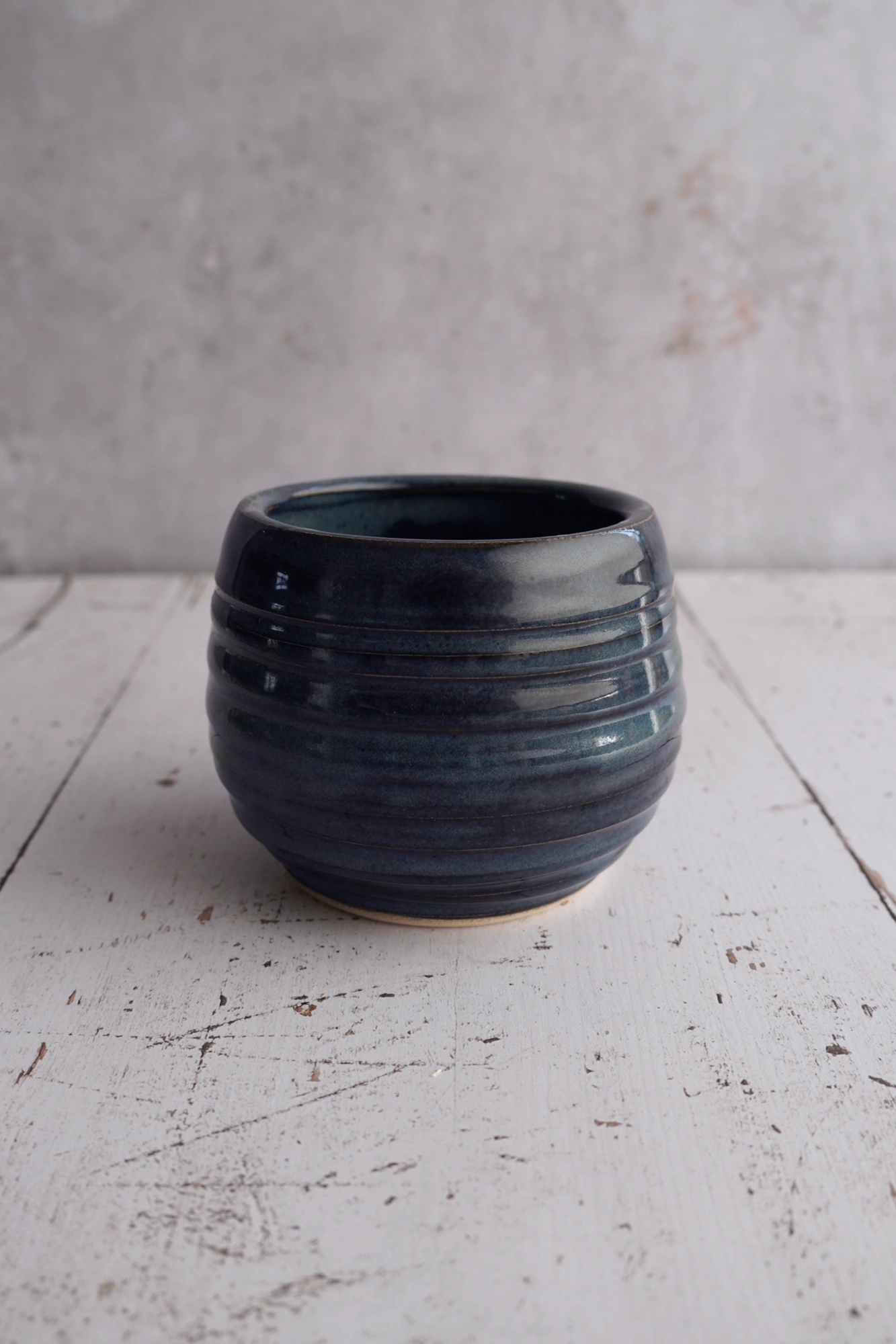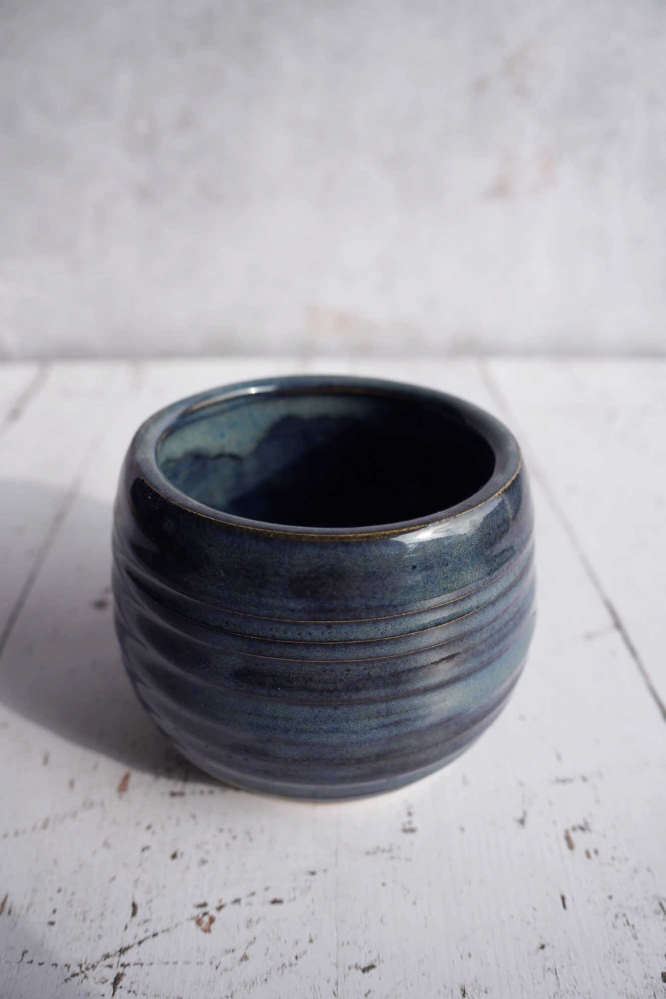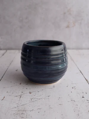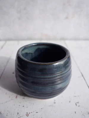 This handmade bowl will immediately catch the eye on your table. The grooves create a playful effect in the dark blue glaze. You can fill it with all kinds of treats or use it to keep small items together.
